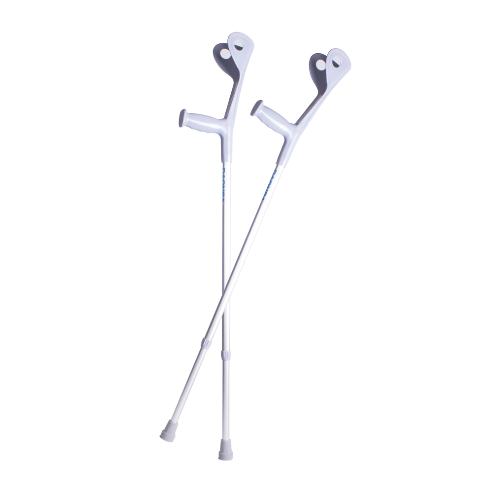 Su diseño alinea la muleta con el hombro y mano del paciente, mejorando el balance y reduciendo la fatiga en la muñeca. Elaboradas de aluminio ultraligero y ajustables a diversos rangos de altura y brazo.